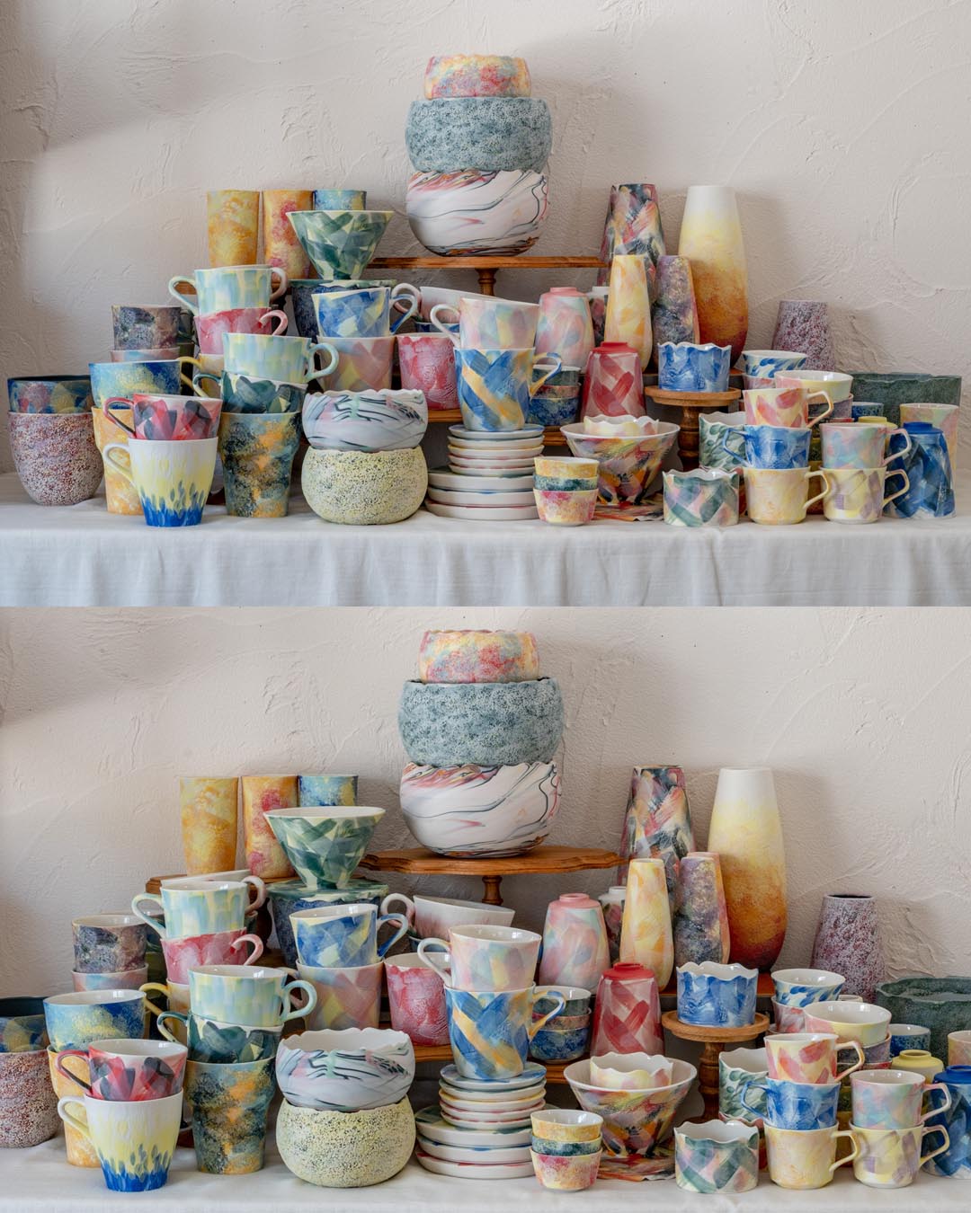 とくにパステル調の柔らかな彩りの植木鉢は、展示前半で完売。インスタグラムをご覧になって「手にしてみたかった」「見たかった」と多くのお声をいただきました。