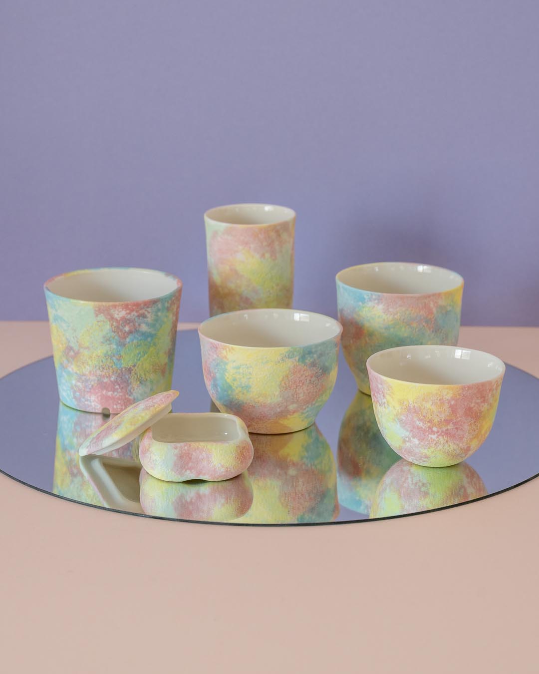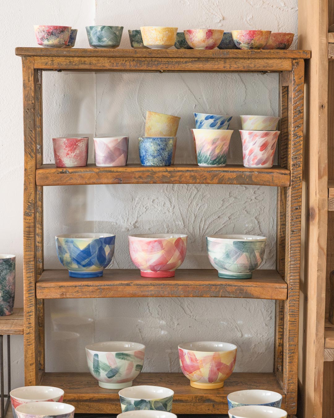 さらに、すっきりと背の高いタンブラー、やわらかな丸みが手に馴染むフリーカップなど、日常を少し特別にしてくれる器たちが並びました。
