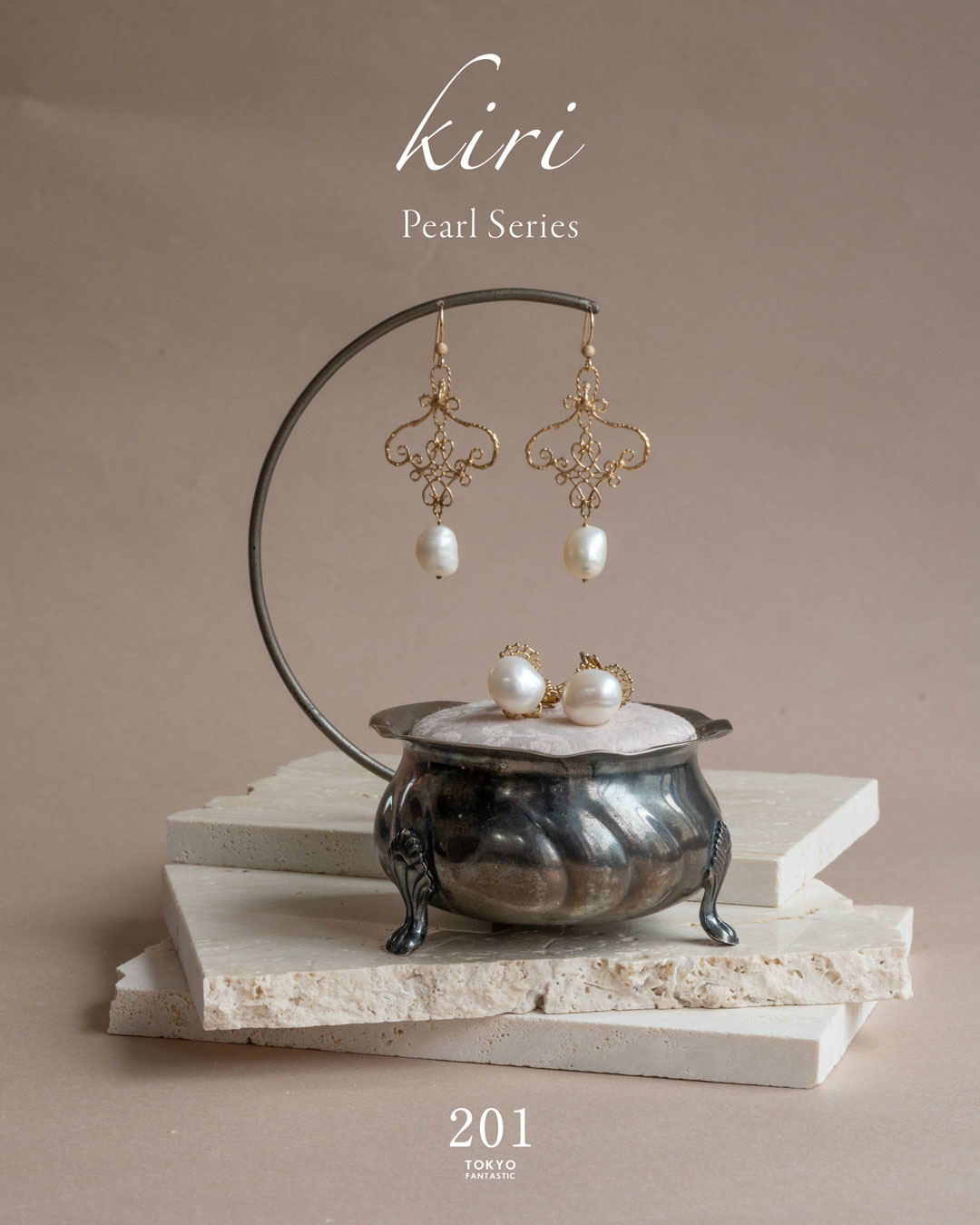 kiriさんのインスピレーションで紡ぎ出される、朝露のような繊細なデザインと、淡水パールの美しさが響きあいます。