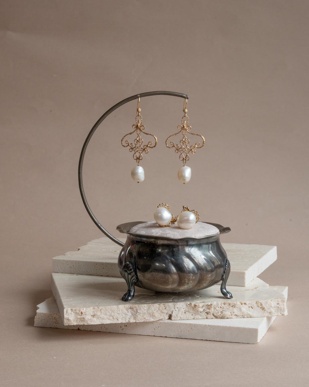 パールそのものの持つゆるやかな曲線を用いた、優しげで美しいフォルム。