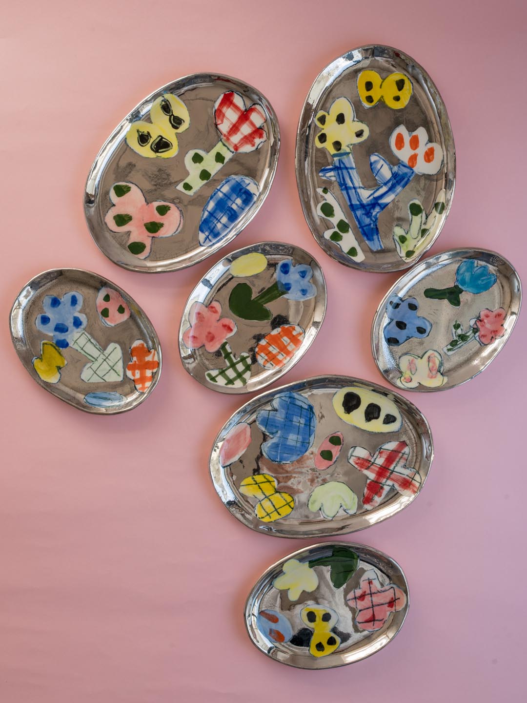 自由に描かれた絵付けのプレートには、作家ののびやかな感性が宿っています。